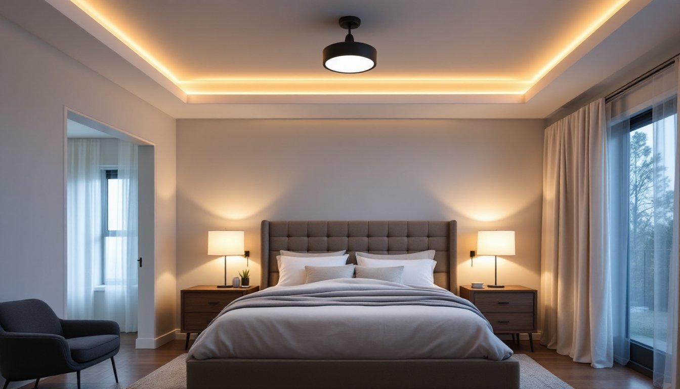Start with your ambient layer: the overhead fixture or ceiling fan light. This should provide general illumination for cleaning, changing sheets, or finding that missing shoe. Pair it with a dimmer so you can knock the intensity down to 20–30% in the evening. If you’re adding a new fixture to an existing junction box, verify the box is rated for the fixture’s weight, ceiling fans and heavy chandeliers require a fan-rated or 50-pound-rated box.
