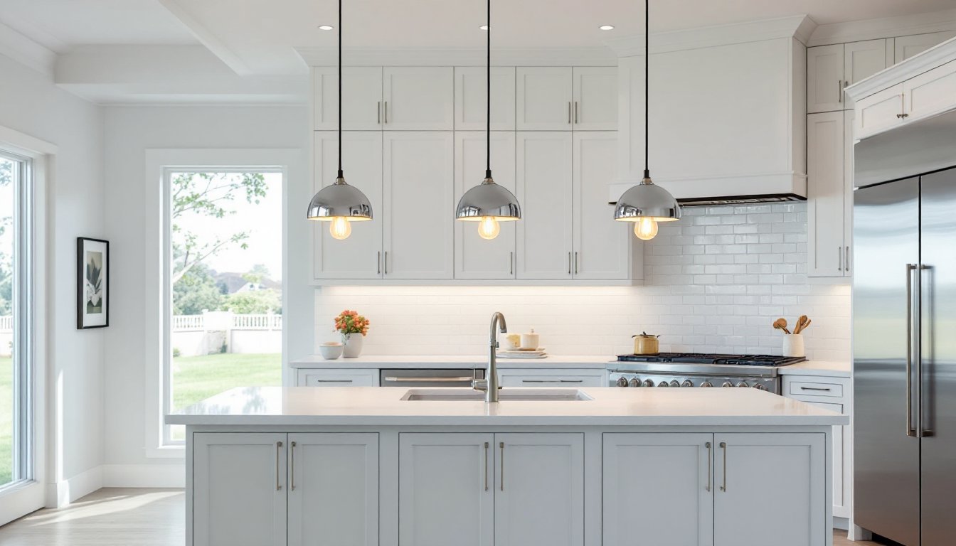Multi-light linear pendants distribute multiple chrome shades along a single canopy, ideal for long islands or breakfast bars. These fixtures simplify wiring (one junction box instead of three) and ensure perfect spacing. Look for adjustable-height cords, most homes have 9-foot ceilings, but vaulted or 10-foot ceilings require longer drops. Some models offer industrial cage accents that pair chrome with Edison-style bulbs for a modern-industrial hybrid.